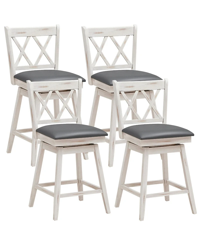 Gymax Set of Barstools Swivel Counter Height Chairs with Rubber Wood Legs