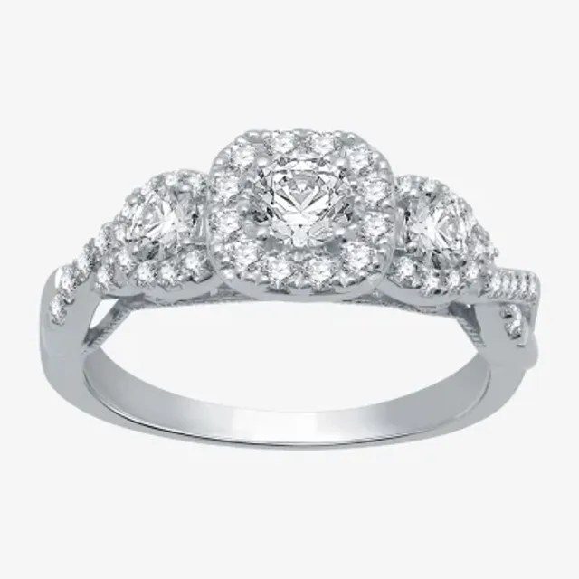 Love Lives Forever (H-I / I1) Womens 2 CT. T.W. Lab Grown White Diamond 10K Gold 3-Stone Halo Engagement Ring