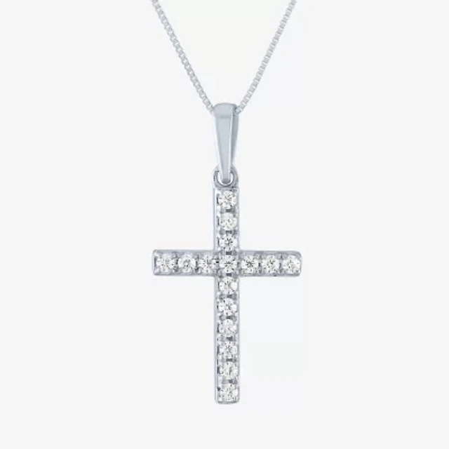(H-I / I1) Womens 1/6 CT. T.W. Lab Grown White Diamond 10K Gold Cross 18 Inch Pendant Necklace