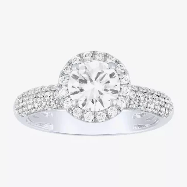 (H-I / I1) Womens 2 CT. T.W. Lab Grown White Diamond 14K White Gold Round Side Stone Halo Bridal Set