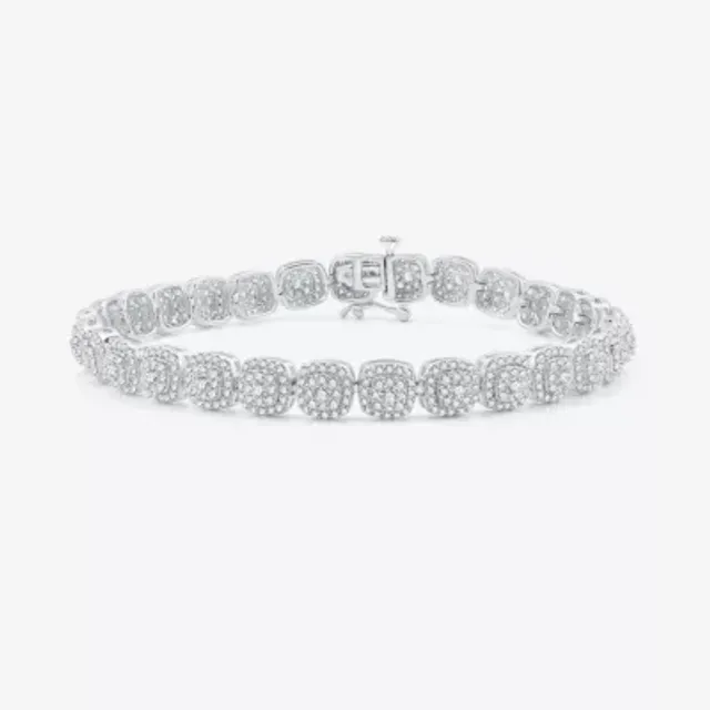 (H-I / I1) Womens 4 CT. T.W. Lab Grown White Diamond 10K White Gold Cushion 7.5 Inch Tennis Bracelet