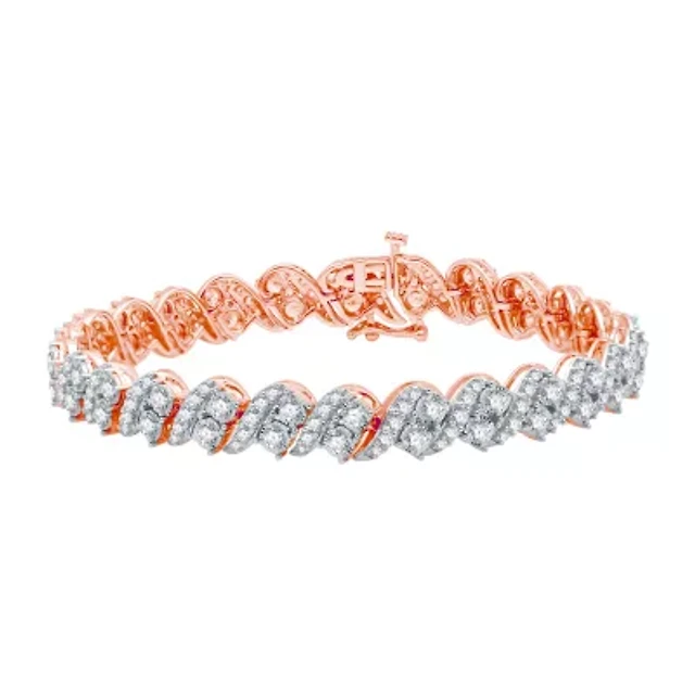 (H-I / I1) Womens 5 CT. T.W. Lab Grown White Diamond 10K Rose Gold 7.5 Inch Tennis Bracelet