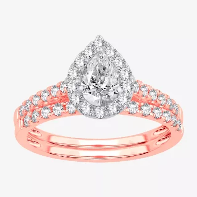 (H-I / SI1-SI2) Signature By Modern Bride Womens 1 CT. T.W. Lab Grown White Diamond 10K or 14K Gold Pear Halo Bridal Set