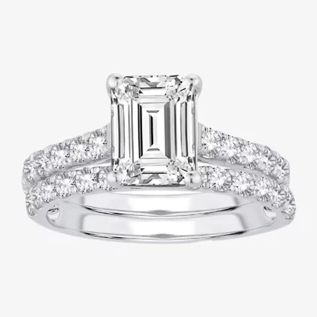 (H-I / SI1-SI2) Signature By Modern Bride Womens 3 CT. T.W. Lab Grown White Diamond 14K Gold Emerald Bridal Set
