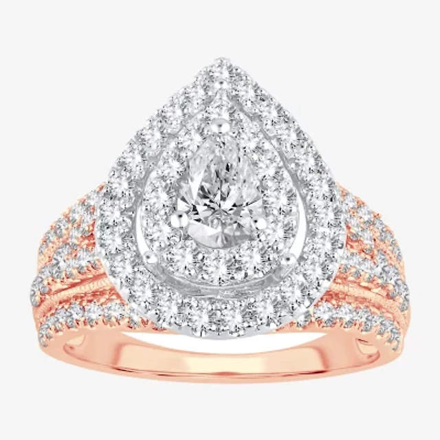 Signature By Modern Bride (H-I / I1) Womens 1 CT. T.W. Lab Grown White Diamond 10K Gold Pear Side Stone Halo Engagement Ring