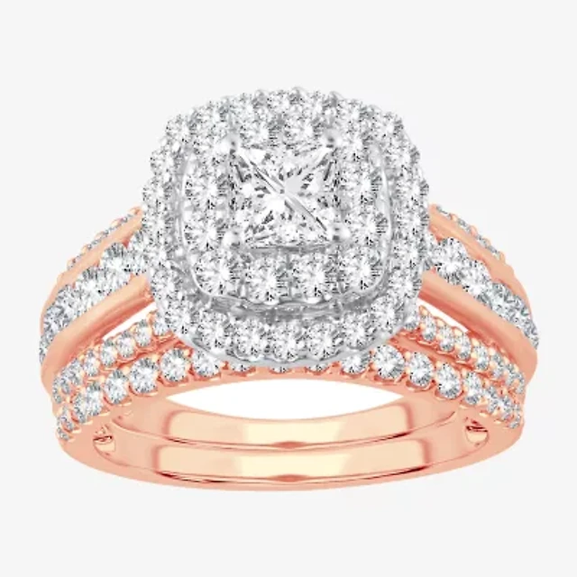 (H-I / SI1-SI2) Signature By Modern Bride Womens 2 1/2 CT. TW. Lab Grown White Diamond 14K Gold Princess Bridal Set