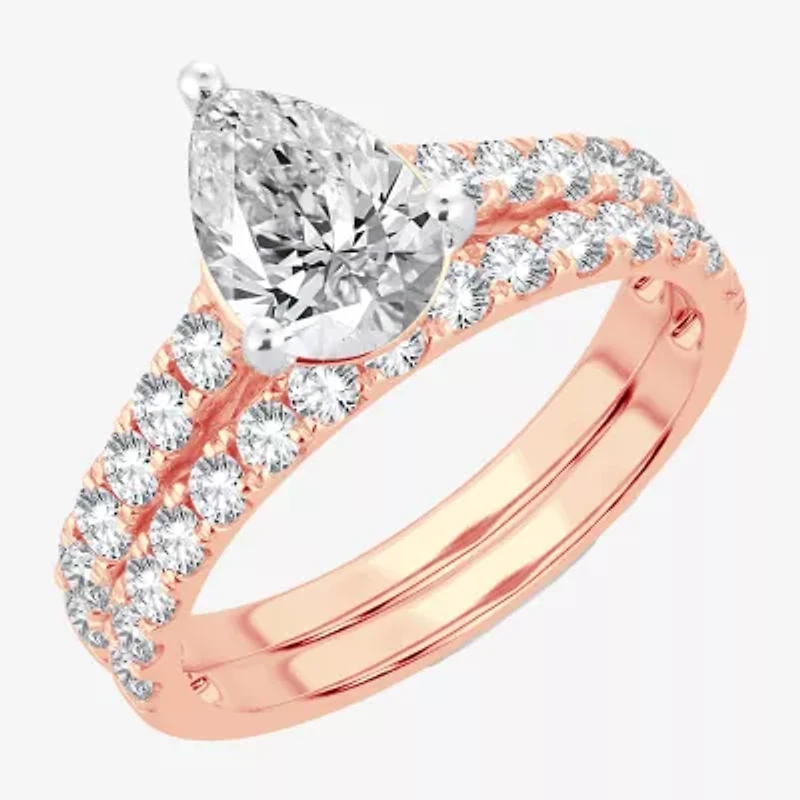 (H-I / SI1-SI2) Signature By Modern Bride Womens 3 CT. T.W. Lab Grown White DiamondIn 14K Gold Pear Bridal Set