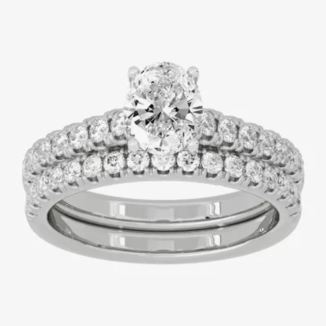 Signature By Modern Bride (G-H / Si1-Si2) Womens 1 1/3 CT. T.W. Lab Grown White Diamond 10K Gold Oval Side Stone Halo Bridal Set