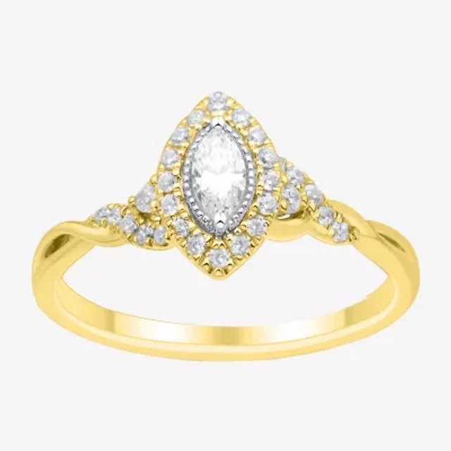 (H-I / Si1-Si2) Womens 1/3 CT. T.W. Lab Grown White Diamond 10K Gold Marquise Side Stone Halo Engagement Ring