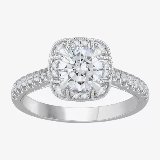 (H-I / Si1-Si2) Womens 1 5/8 CT. T.W. Lab Grown White Diamond 14K Gold Side Stone Halo Engagement Ring