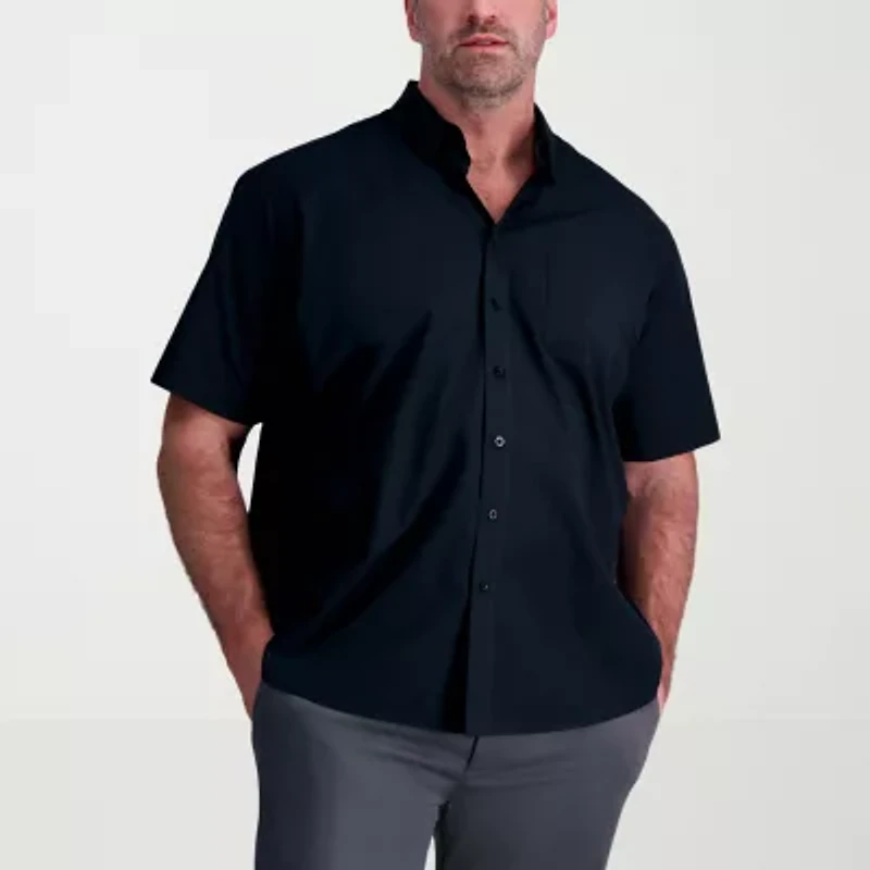 Haggar Life Khaki With Repreve Comfort Woven Mens Short Sleeve Regular Fit Stretch Fabric Big and Tall Button-Down Shirt