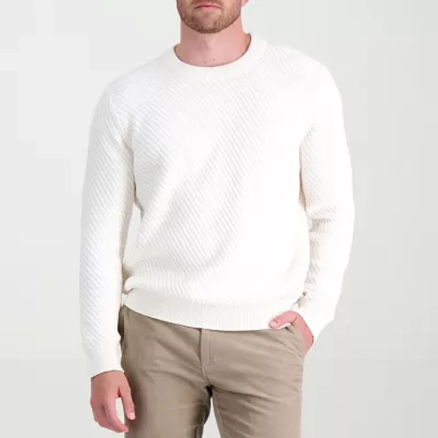 Haggar Stripe Ribbed Mens Crew Neck Long Sleeve Pullover Sweater
