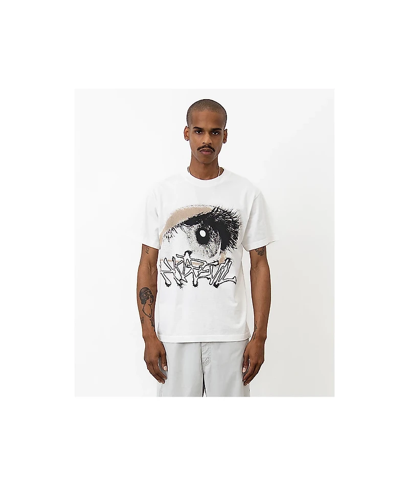 Available in a clean white cotton build from HALF EVIL, the UV 3Y3 t-shirt adds a designer streetwear vibe to any modern fit with a detailed, screen-printed graphic on the front. Employing a ribbed crewneck collar for a casual fit, the chest boasts a
