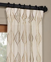 Half Price Drapes Suez Bronze Embroidered Striped Patterned Faux Linen Sheer Curtain