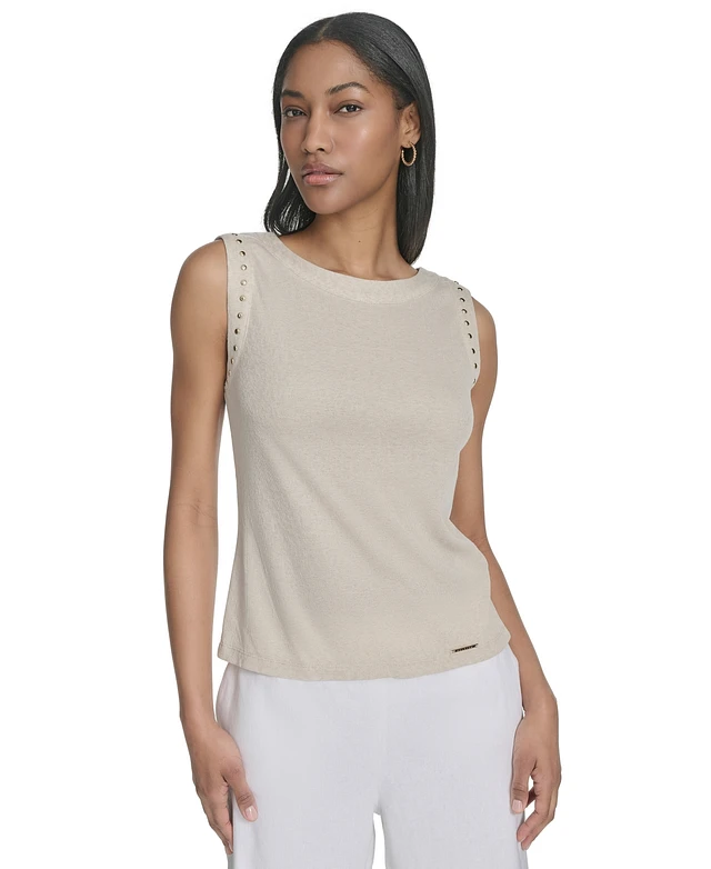Halston Women's Rhinestone-Armhole Round-Neck Top