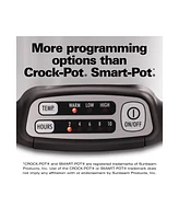 Hamilton Beach Stovetop Sear; Cook programmable slow cooker has everything you need to create homemade, delicious meals on your schedule. Sear meat on your stovetop to lock in flavor, and then finish the meal in the slow cooker. Removable nonstick aluminum pot cooks directly on gas, electric, or ceramic stovetops and is oven safe. With more programming options than a Crock-Pot Smart-Pot slow cooker, mix and match temperature settings with your choice of cooking times. Choose from 2, 4, 6, 8, or 10 hours of cooking time and high, low, or warm temperature settings. The 6-quart oval crock is the perfect size for a 6 lb. chicken or 4 lb. roast. Both pot and lid are dishwasher safe for easy cleanup.