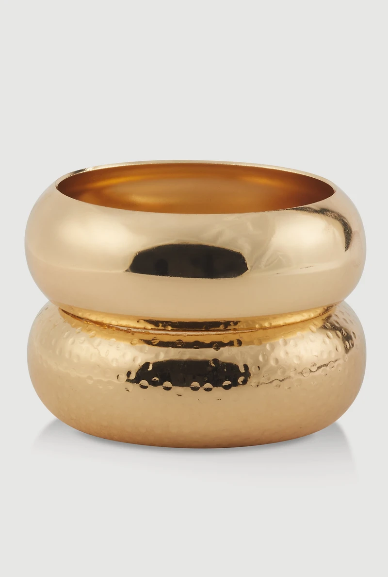 Hammered Detail Metallic Bangle Bracelets Set of 2
