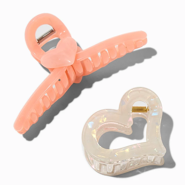 Mixed Metal Textured Heart Hair Claws - 2 Pack