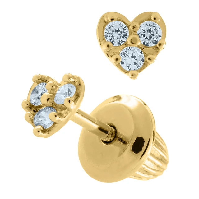 14K Gold Heart Kids Stud Earrings
