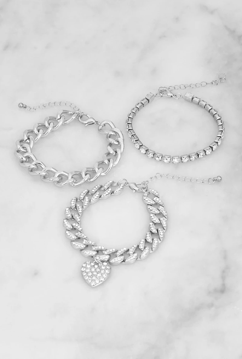 Heart Rhinestone Charm Chain Bracelet Trio in San Juan, PR