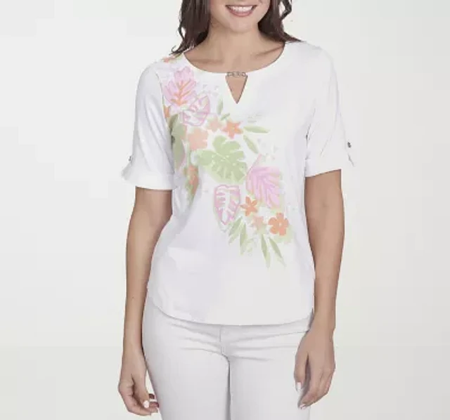 Hearts Of Palm Womens Keyhole Neck Elbow Sleeve T-Shirt