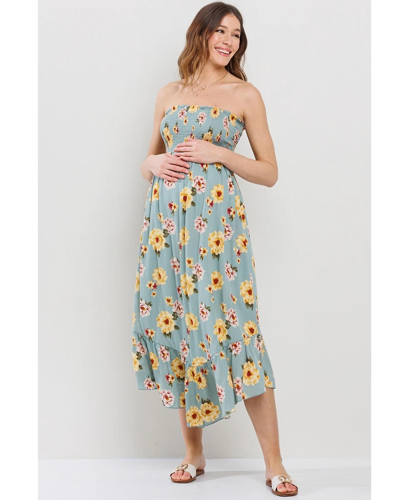 Hello Miz Maternity Floral Smocked Strapless Midi Dress