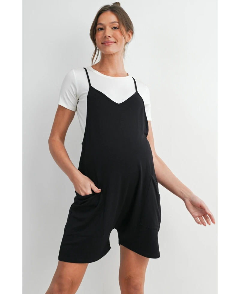 Hello Miz Maternity Sleeveless Loose Fit V-Neck Romper with Pockets and Adjustable Straps in San Juan, PR