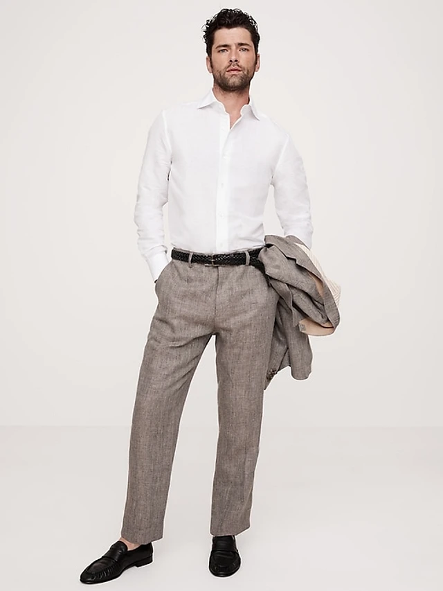 Herringbone Cotton-Linen Double-Breasted Suit Jacket