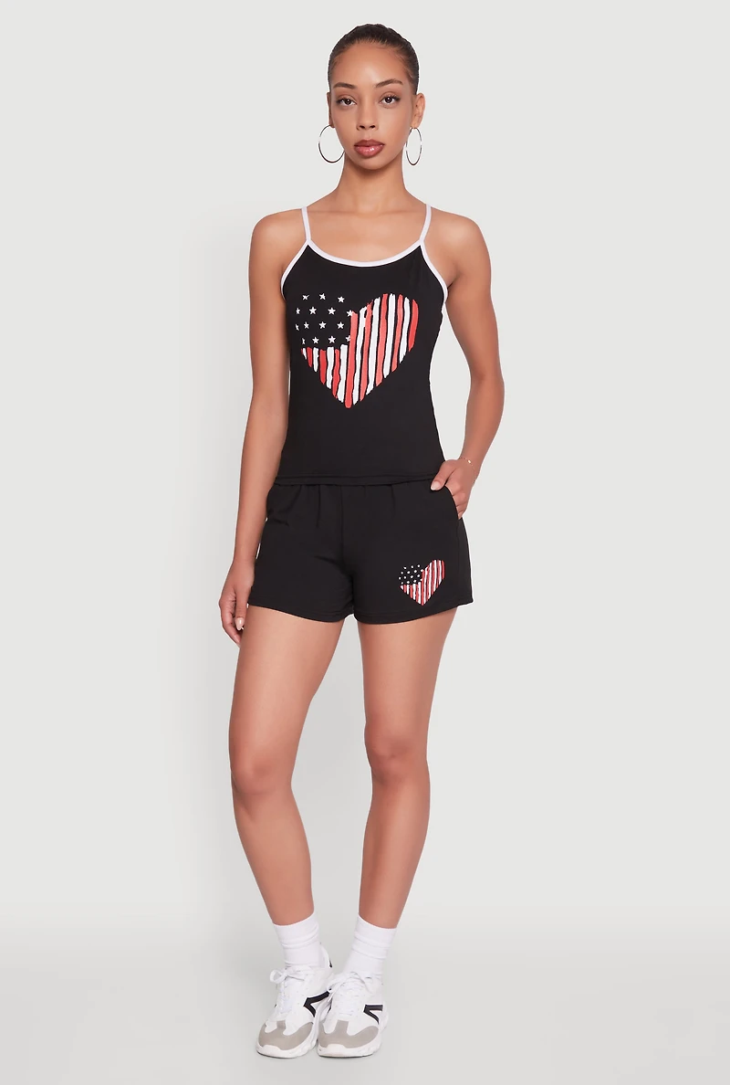 High Waisted American Flag Heart Graphic Shorts