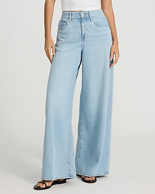 High Waisted Light Wash Relaxed Wide Leg Jeans