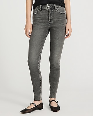 High Waisted Washed Black Raw Hem Skinny Jeans