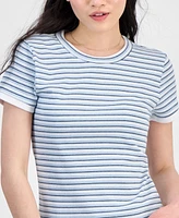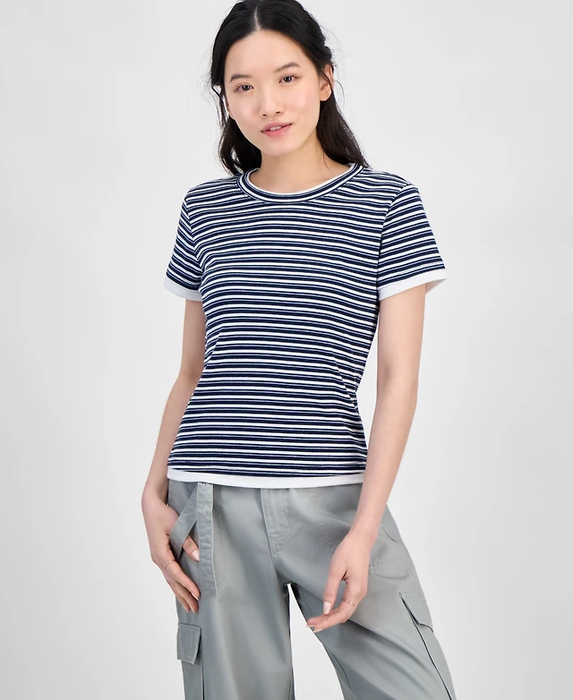 Hippie Rose Juniors' Layered Look Striped T-Shirt