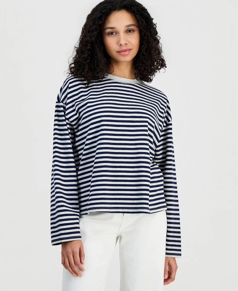 Hippie Rose Juniors' Oversized Striped Long-Sleeve Crewneck TeeHippie Rose Juniors' Oversized Striped Long-Sleeve Crewneck TeeHippie Rose Juniors' Oversized Striped Long-Sleeve Crewneck TeeHippie Rose Juniors' Oversized Striped Long-Sleeve Crewneck Tee