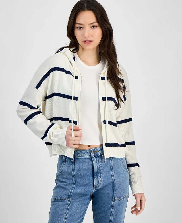 Hippie Rose Juniors' Striped Hoodie Sweater