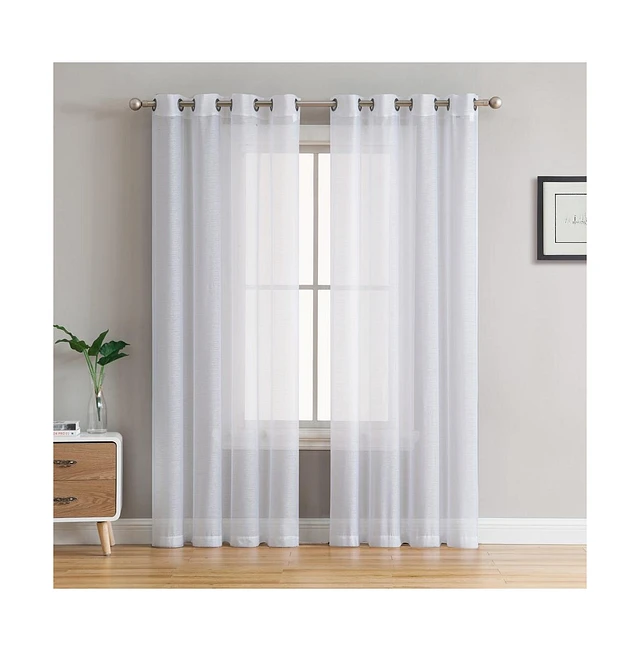 Hlc.Me Emily Faux Linen Semi Sheer Light Filtering Transparent Grommet Lightweight Window Curtains Drapery Panels 2 Panels