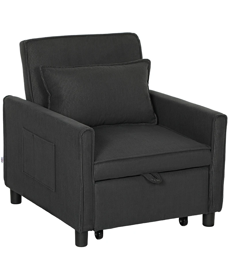 Homcom 3-in-1 Convertible Chair Bed, Adjustable Sleeper Chair,