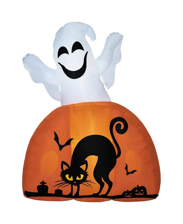 National Tree Company 4' Halloween Inflatable Ghost with Pumpkin Small Scene, Led Lights