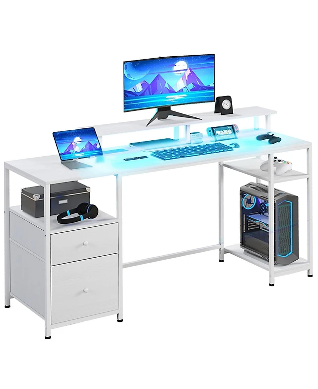gaomon L Shaped Desk with Drawers and Led Lights, 55 Inch Computer Desk with Shelves & Monitor Stand, L Shaped Computer Desk with Usb Charging Port an