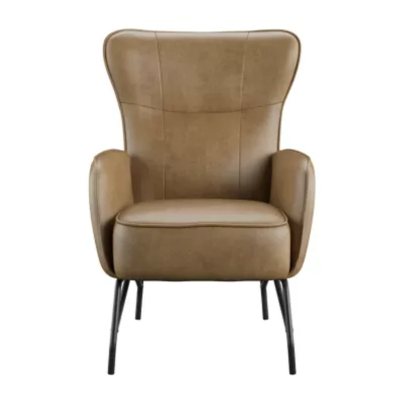 This armchair adds class anywhere you put it. Slightly splayed metal legs compliment a durable faux leather upholstery showcasing a curved silhouette that works well in any contemporary setting. Its foam-filled upholstery adds comfort and support while a neutral hue allows it to blend with a variety of color schemes. The sturdiness of this armchair along with its faux leather upholstery creates an easy-cleaning exterior makes it unique amongst armchairs. Add modern elegance to your home with this posh armchair.