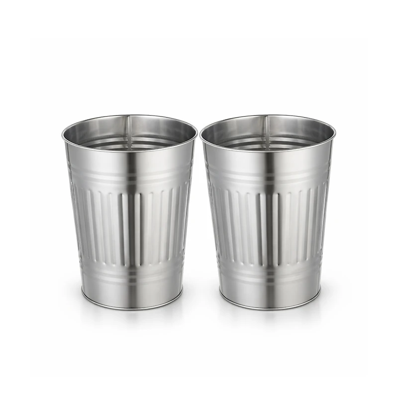 Keep everyday spaces clean and organized with the Home Zone Living 3 Gallon Rectangular Open Top Wastebasket 2 Pack. Designed for bathrooms, offices, bedrooms, and home workspaces, these compact bins make disposal simple with an open top design that allows quick drop in use without lids or pedals. The rectangular shape fits neatly under desks, beside vanities, or in tight corners where space is limited to help maintain a tidy layout without taking up unnecessary room. Each wastebasket is made from stainless steel with a matte silver finish that delivers a clean modern appearance and wipes down easily for everyday upkeep. The two pack setup makes it easy to place matching bins in more than one room for a coordinated look throughout the home. Included trash bags help simplify setup so both wastebaskets are ready to use right away.