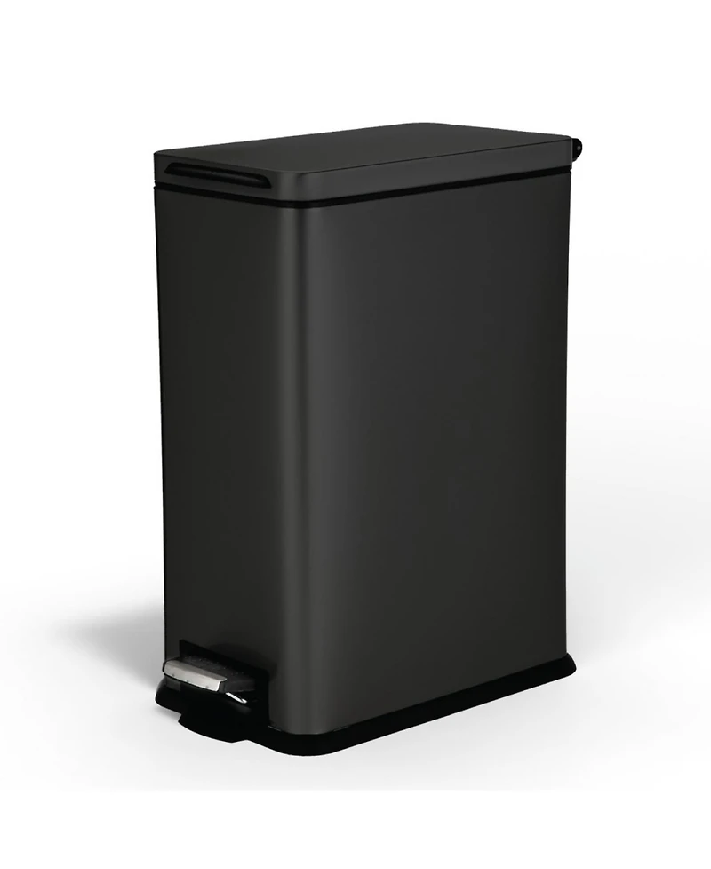 From Home Zone Living, this slim 8-gallon trash can brings modern design and everyday convenience to kitchens, offices, or small spaces. The narrow stainless steel body fits easily beside counters or under tables, while the soft-close lid shuts quietly to reduce noise. A durable step pedal allows for hands-free use, keeping your space hygienic and tidy. The removable inner bucket makes bag changes simple and clean. With its sleek finish and compact footprint, this trash can offers a practical solution for stylish, organized living.