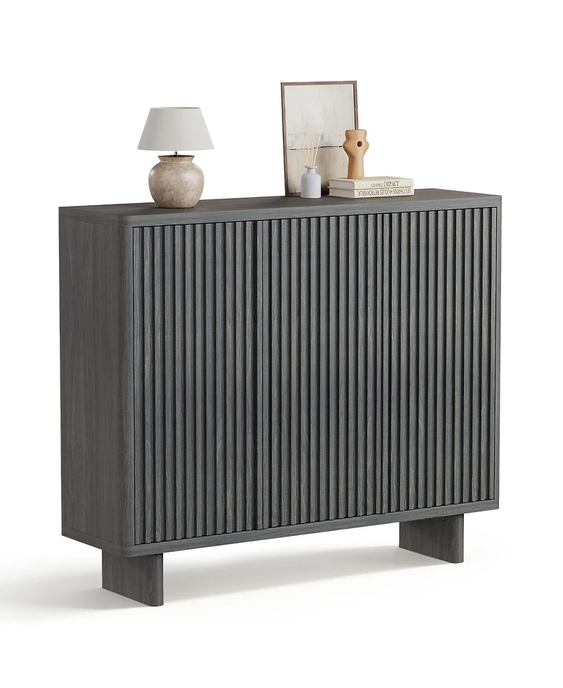 Bring a cleaner look to busy spaces with this 2 piece shoe cabinet set in gray, Each 46 in cabinet offers 5 tiers and 4 adjustable shelves, making it easy to sort flats, sneakers, heels, and boots in a way that suits your routine, Fluted doors add subtle texture, while the rounded edges soften the shape for a more polished look, Use the two cabinets together for a larger entry setup or place them in different rooms, A smart choice for hallways, closets, bedrooms, and living areas that need tidy shoe storage without added bulk