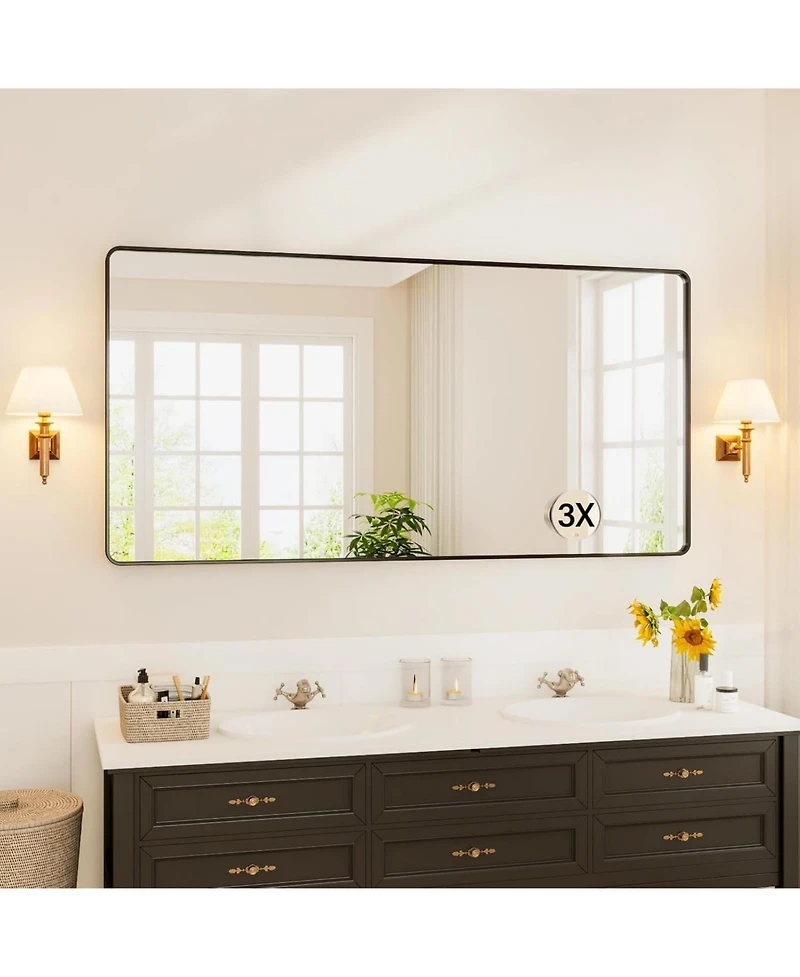 72x36 Inch Black Metal Frame Bathroom Mirror | Rounded Rectangle Anti-Rust Vanity Wall Mirror | Horizontal or Vertical Mount for Bathroom
