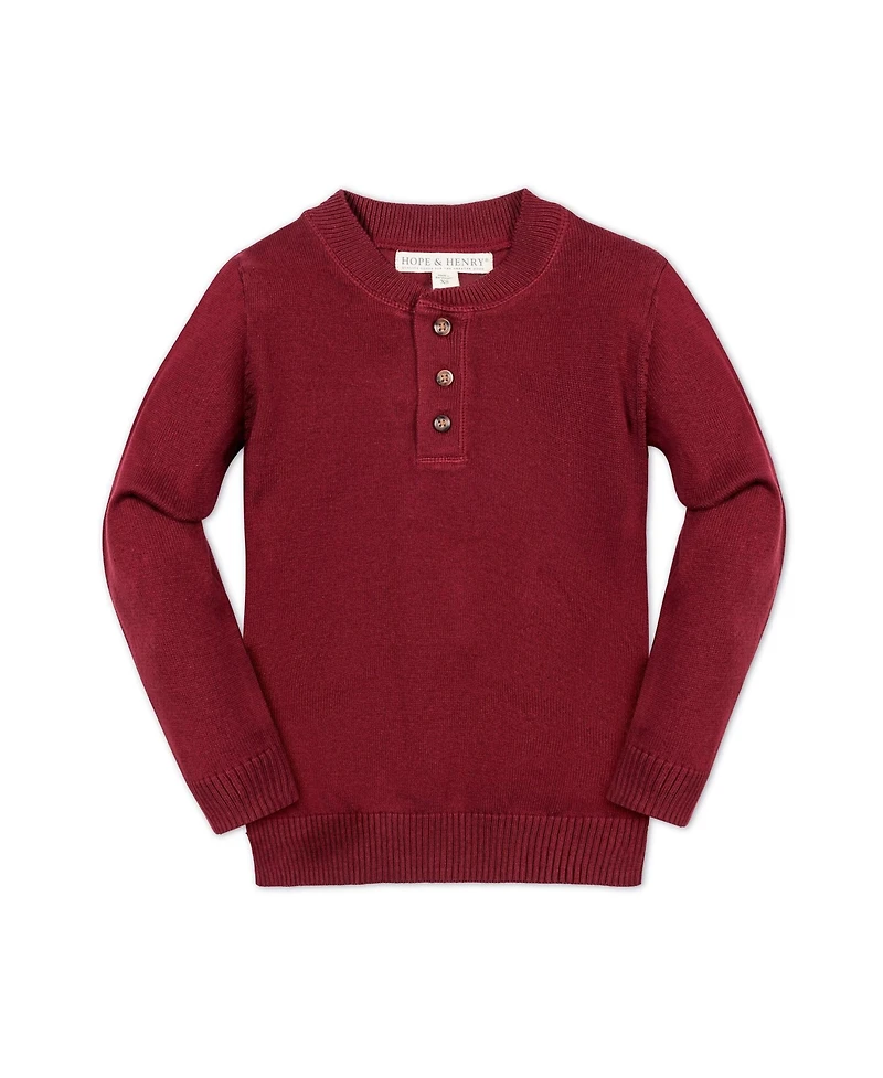 Hope & Henry Boys Organic Long Sleeve Henley Pullover Sweater with Elbow Patches