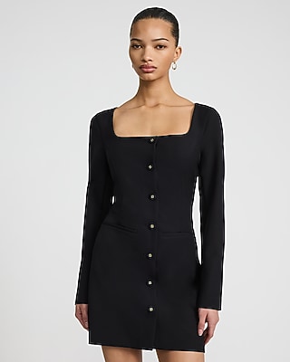 Crepe Square Neck Long Sleeve Mini Blazer Dress