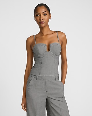 Complete with a timeless houndstooth print, this tailored top features corset details and a U-wire neckline. Plus, it features adjustable spaghetti straps for the perfect fit.