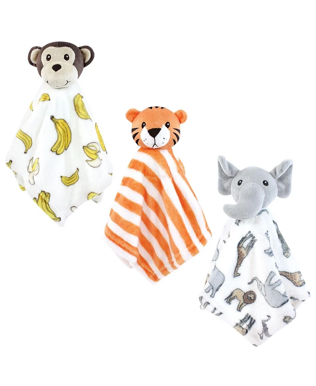 Hudson Baby Animal Face Security Blanket 3-Pack, Modern Safari, One Size