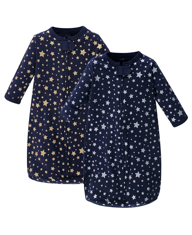 Hudson Baby Baby Boys Hudson Cotton Long-Sleeve Wearable Sleeping Bag, Sack, Blanket, Metallic Stars, 3-9 Months