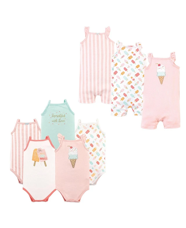 Hudson Baby Baby Girls Hudson Cotton Bodysuits and Rompers, 8-Piece, Ice Cream, 0-3 Months