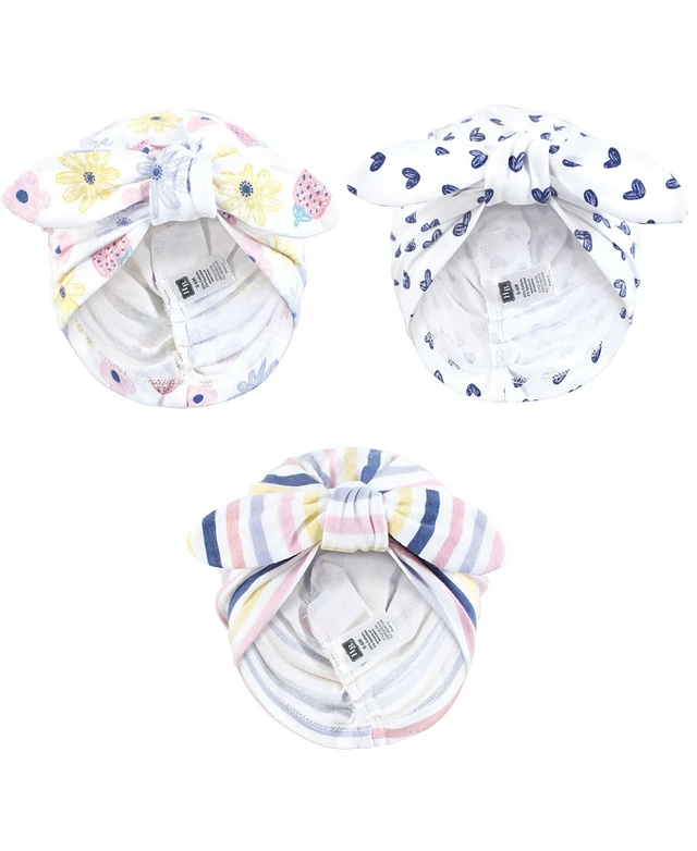 Hudson Baby Baby Girls Hudson Turban Cotton Headwraps, Flowers And Strawberries, 0-24 Months